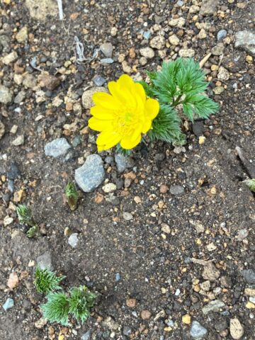 黄色い花は今年初めて咲いた福寿草です。